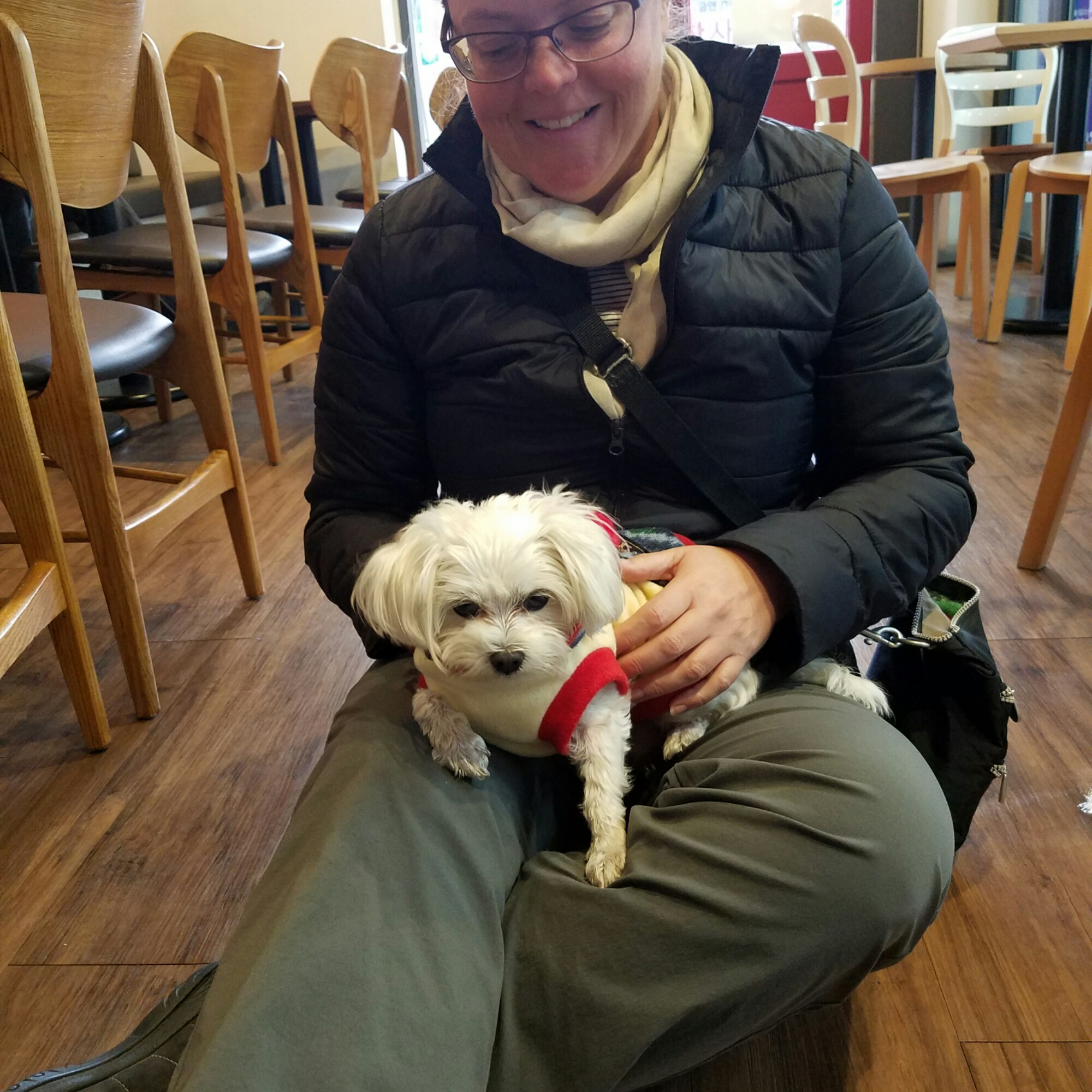 After two train rides, we stopped at a cafe to wait for the bus. I made friends with a cute doggie. We’re BFF’s now.