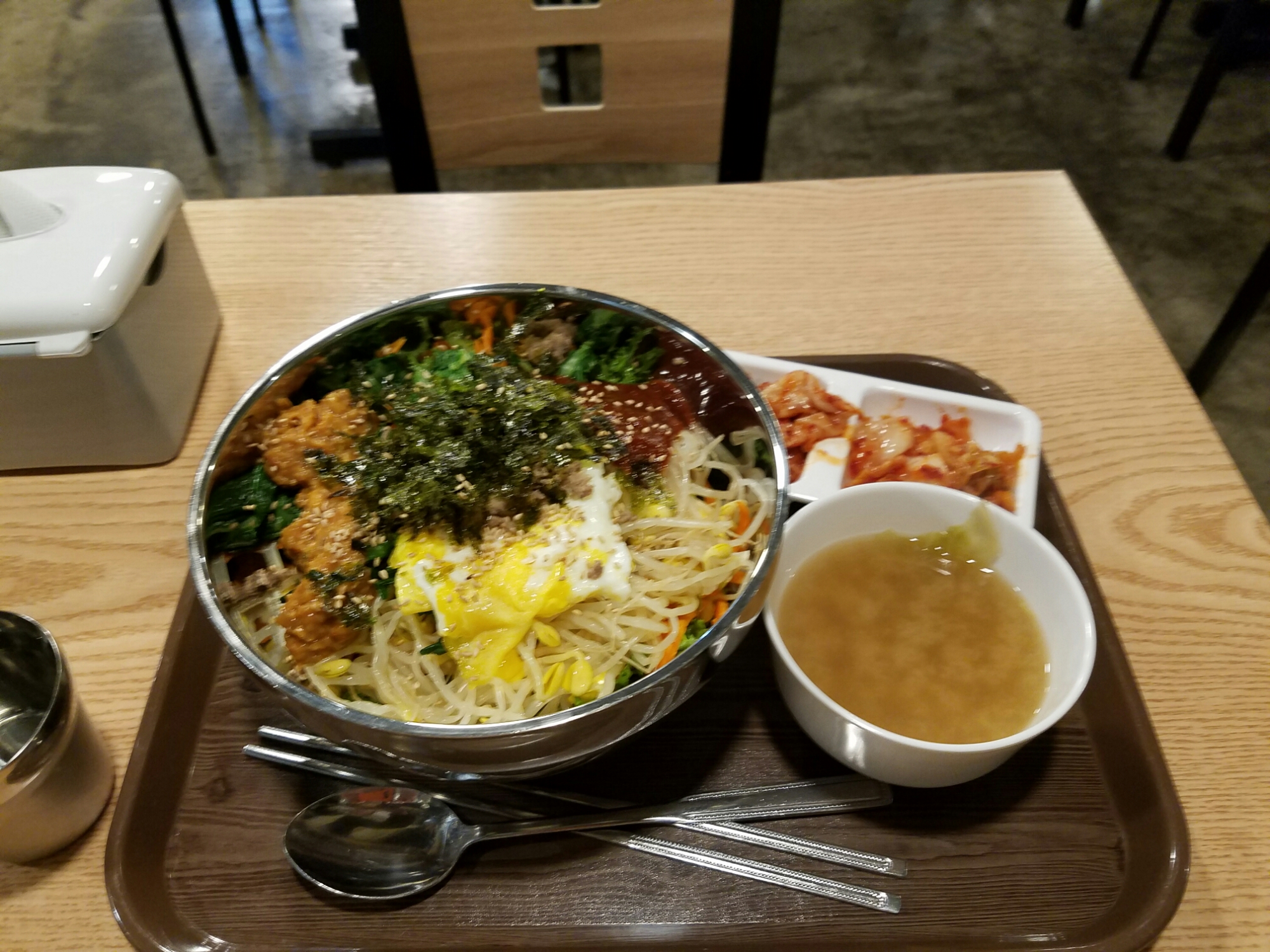 Dinner was glorious. They have all-you-can-eat bibimbap places here and it is wonderful. The food quality is high there.