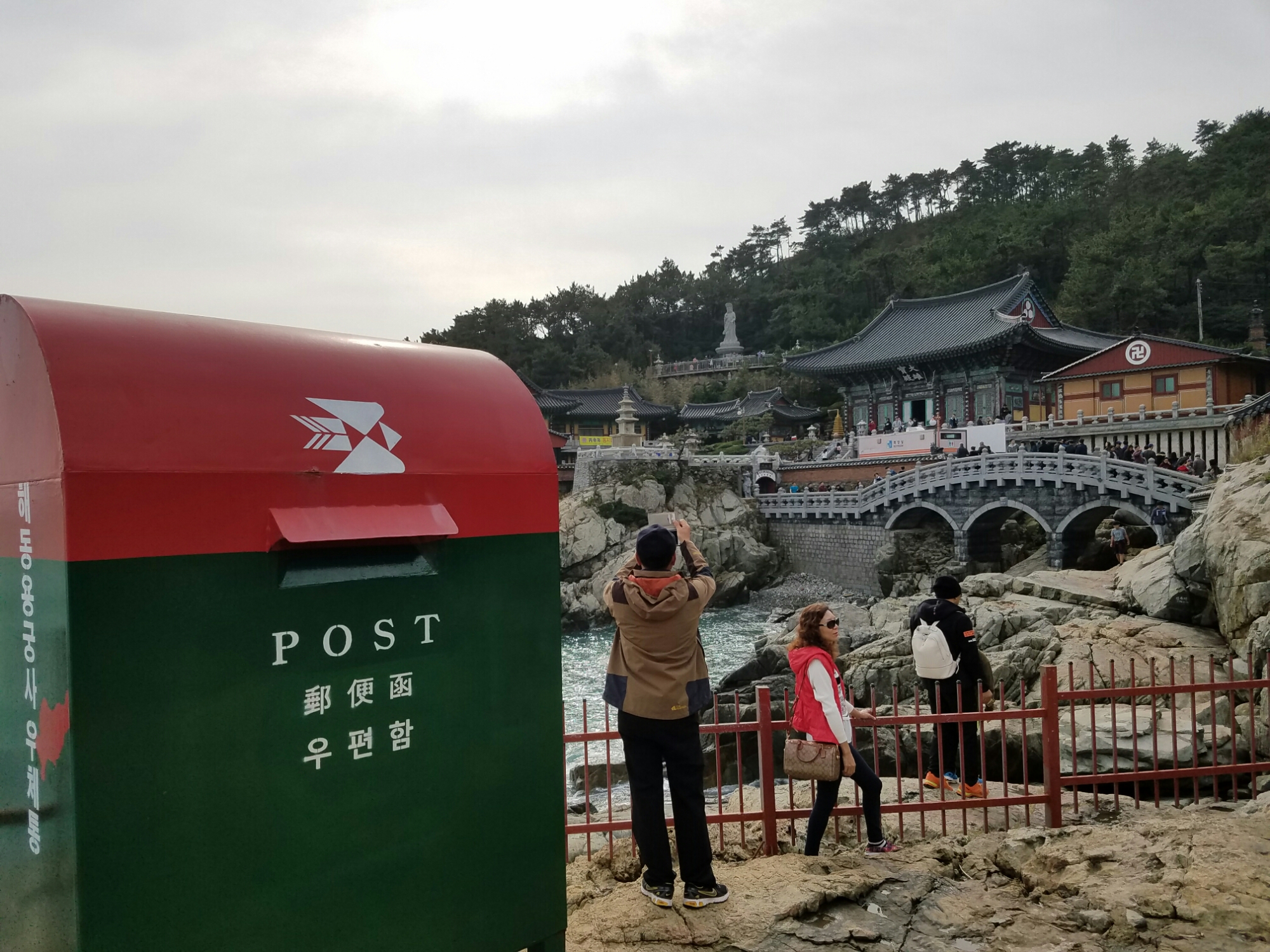 You know if I ever have to go somewhere and cant just follow everyone off the bus I’m in troubleYou can tell a lot of tourists come here by the number of food stallsThis is an unusual gate bc theres no gods guarding itIts also an unusual place bc it’s by the ocean, instead of mountainsThat red ball is the sun, I think