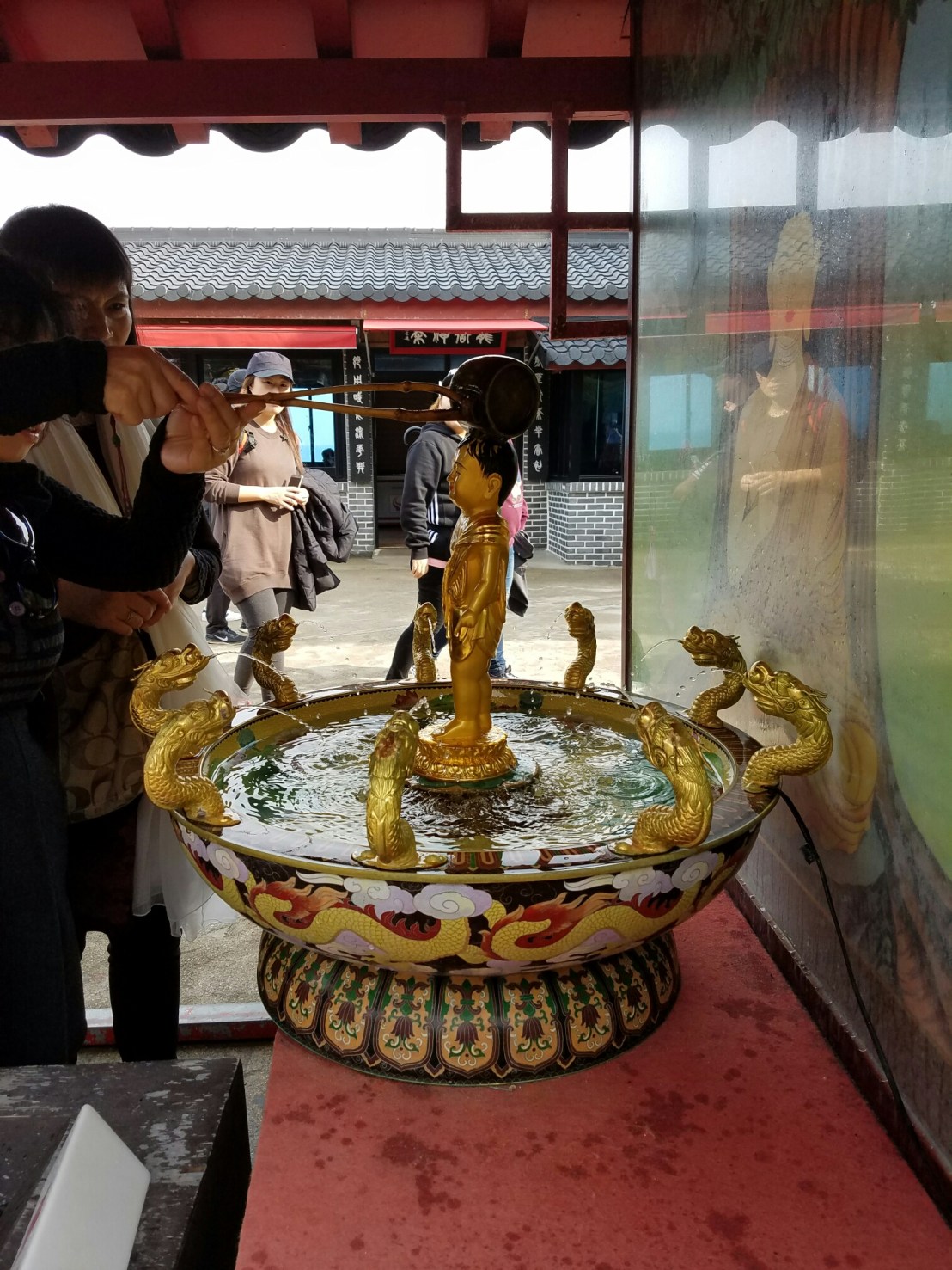 This completely fake and constructed shrine had a snack bar in it lolYoure supposed to wash the statue, this achieves something