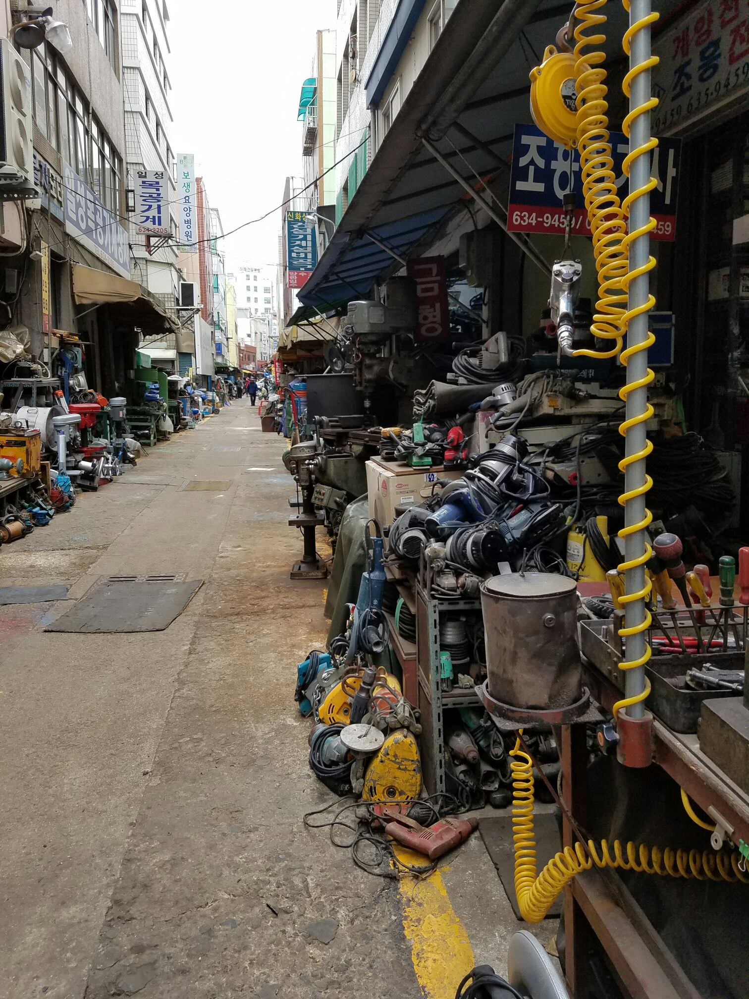 This is the type of market my father would like. Instead of fish and vegetables, blocks of old drill presses and broken grinders