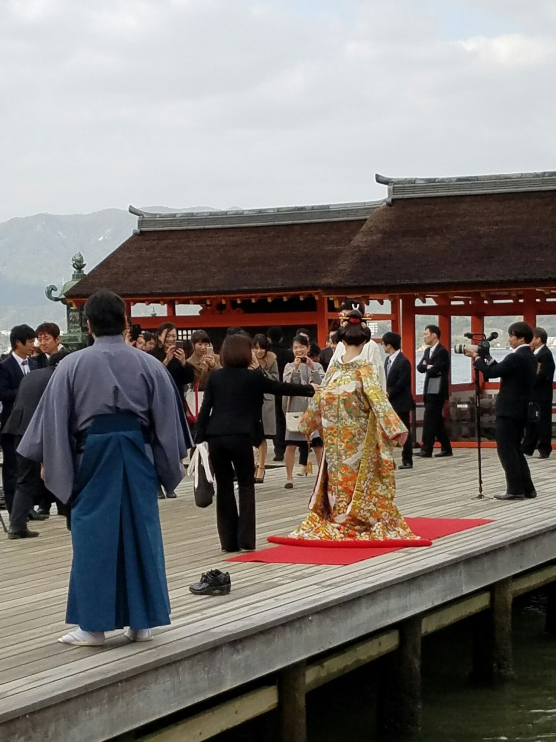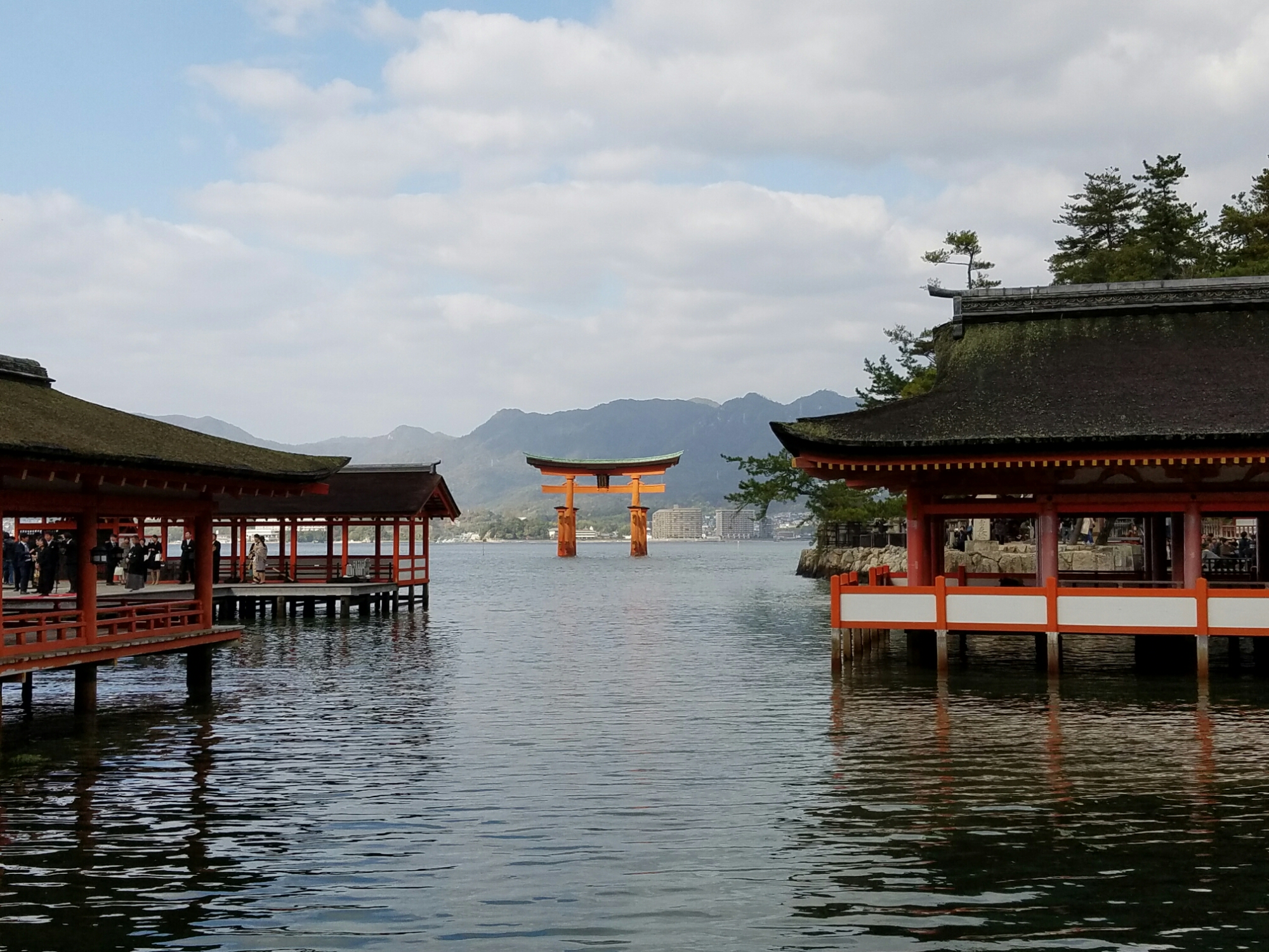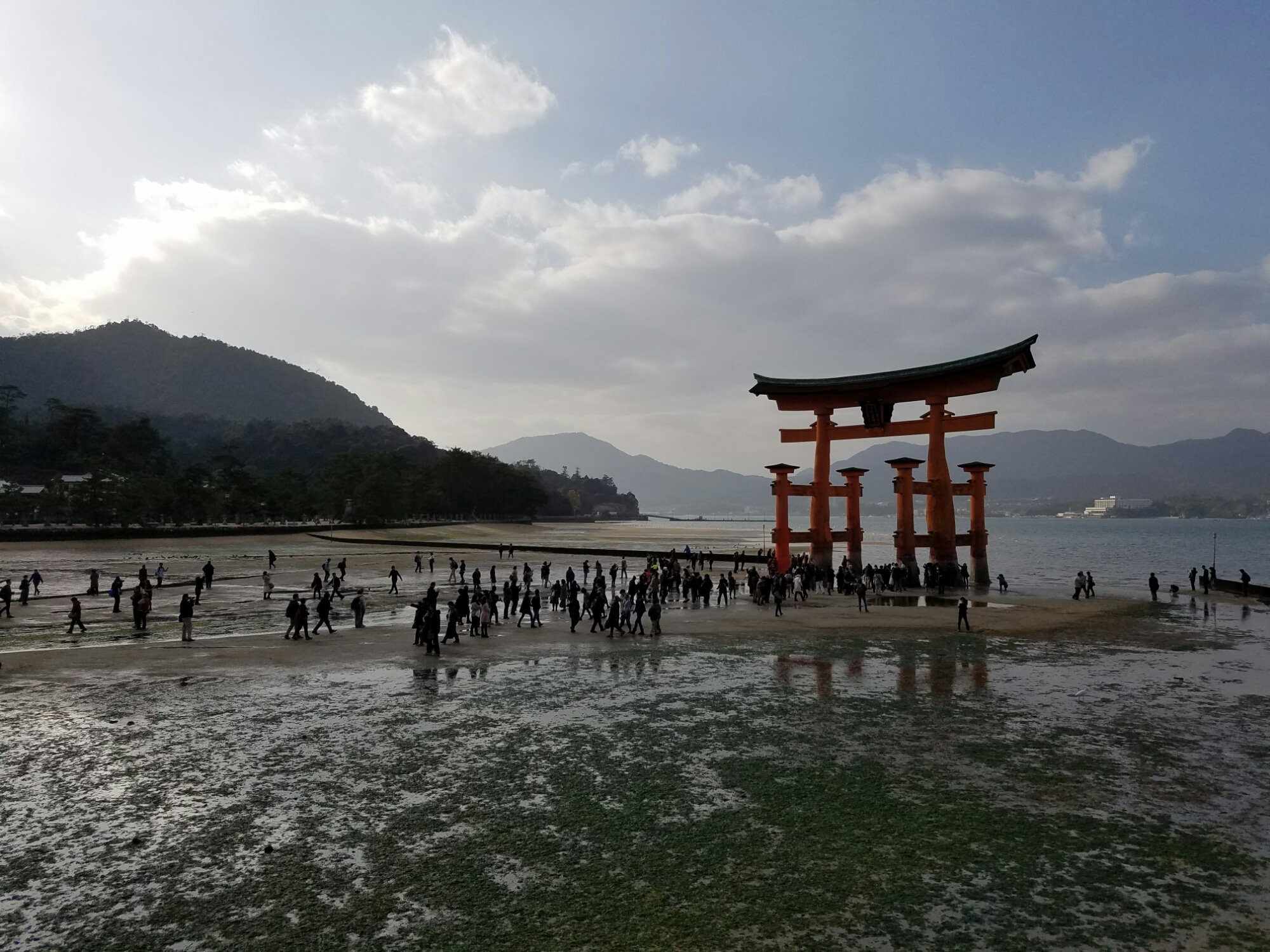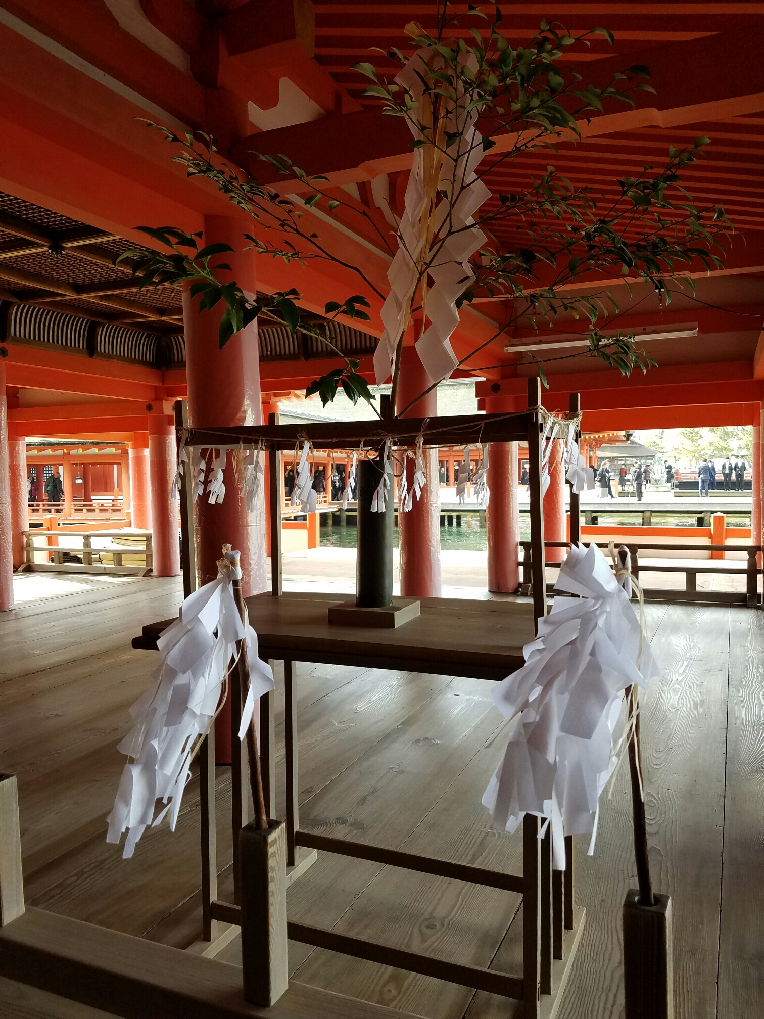 Itsukushima shrine. It actually cost a little to get in and I can see why. soooooo many people would just wear this place out without expensive and continuous maintenance When I got here the tide was just starting to go out.This was something new. Instead of a bell, you shake these paper rattles to get the attention of the gods
