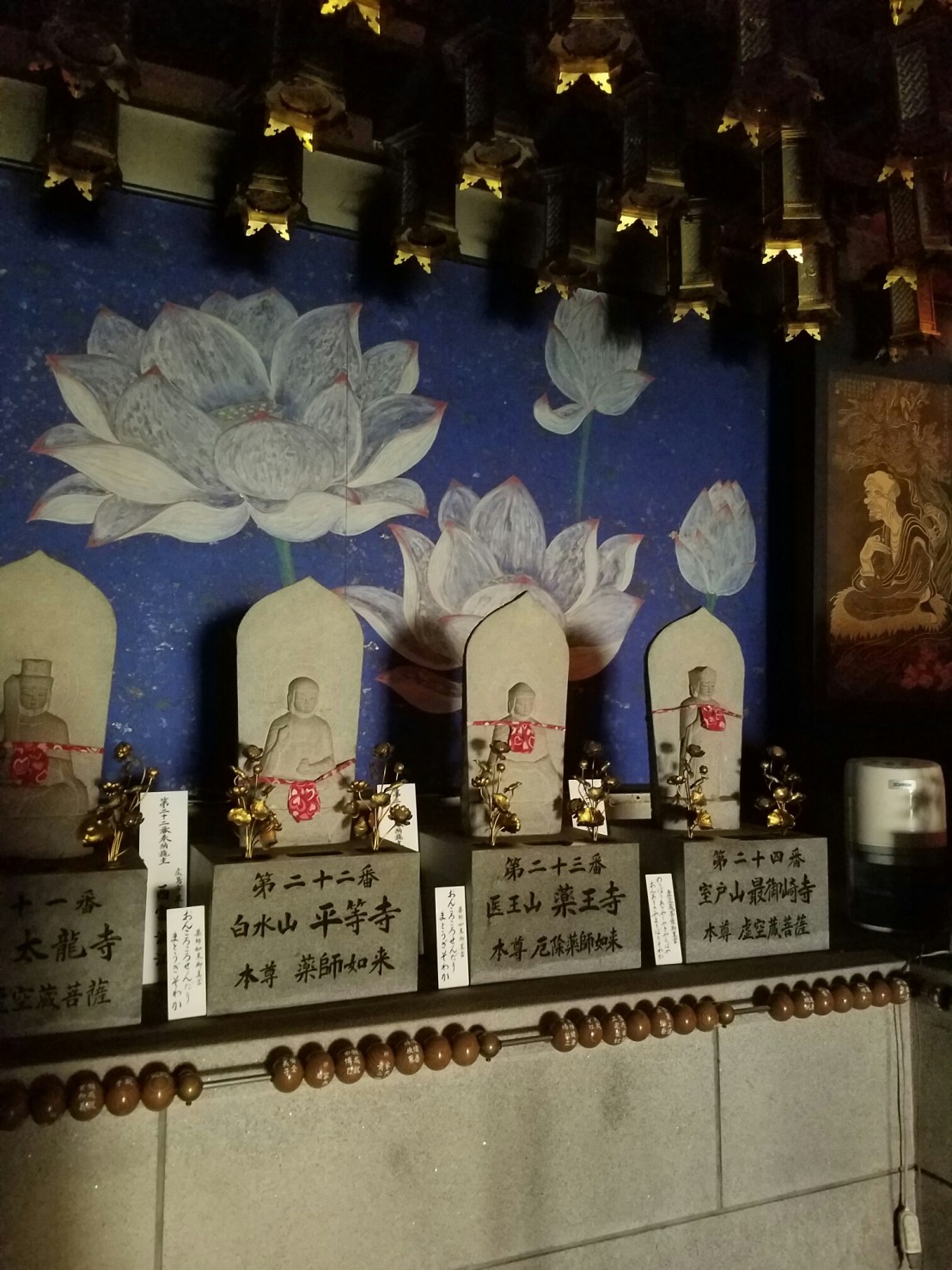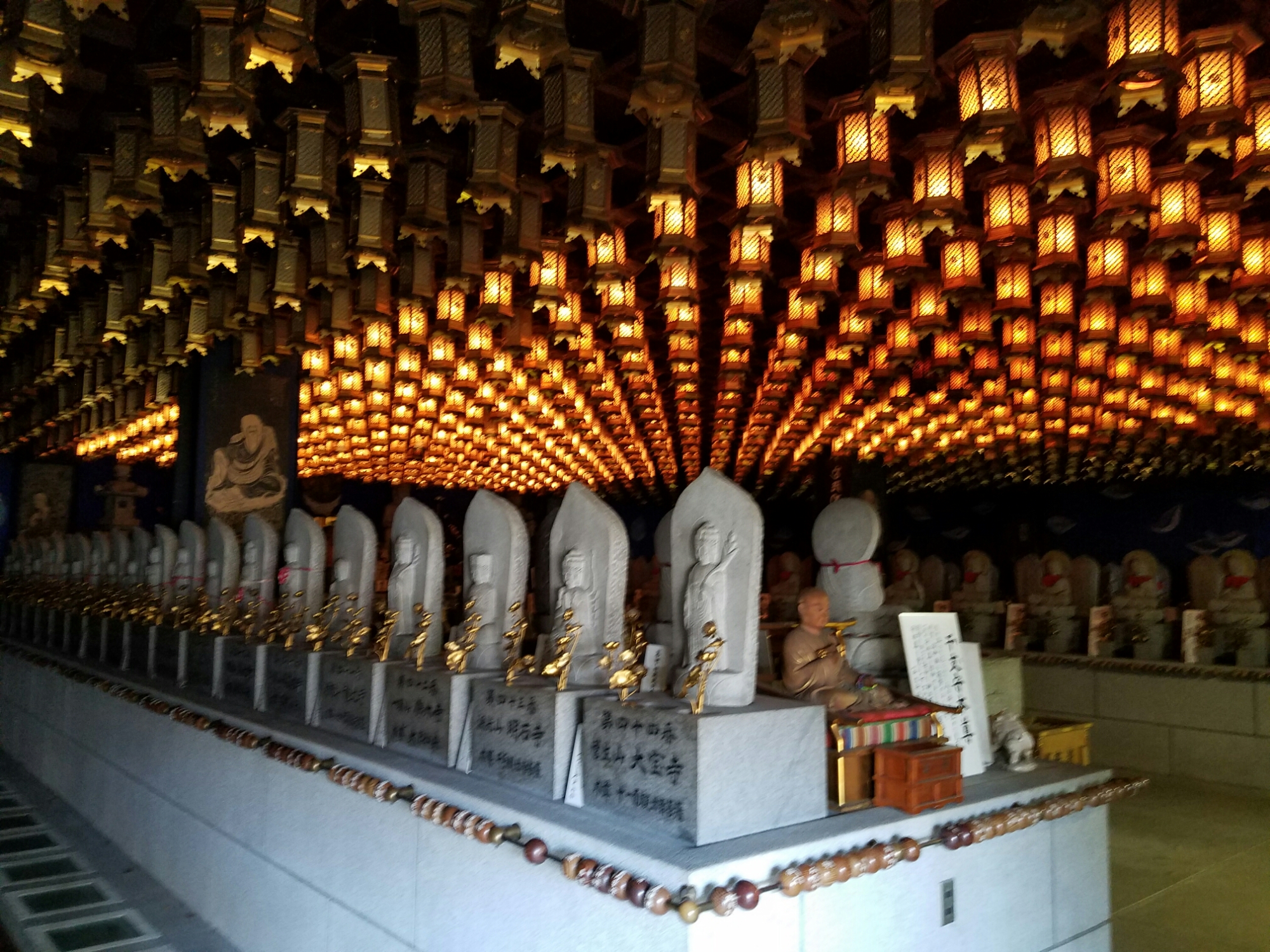 Ok this cave was neat. Devout Buddhists go on pilgrimages of course. The deal here is that sand and icons are collected from 88 other temples all over asia. You walk “across” the sand and pray at each one, and you can say that you made that pilgrimage 88 times. you can see the prayer beads at each station.