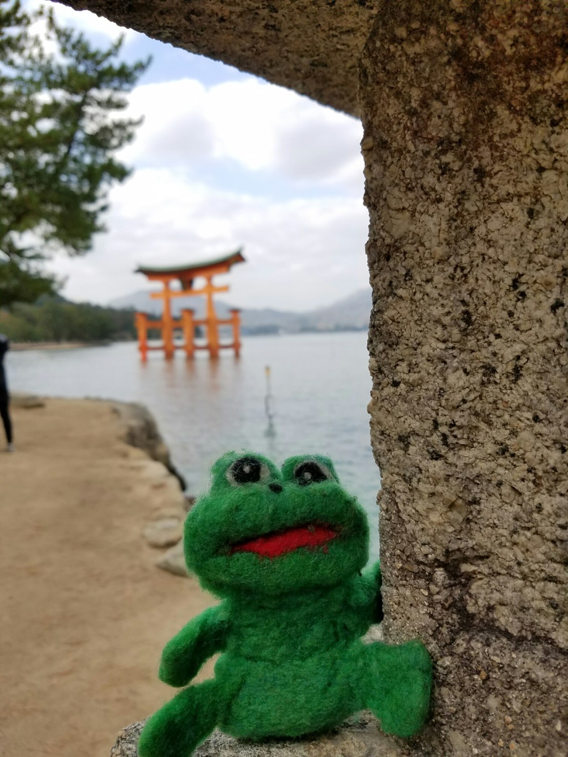 This is just the first part….Of a 210 year old tree…That has been painstakingly trained by the employees of a famous tea shopThese momiji manju are extremely popular. I tried chestnuts cream, sweet potato, and of couse red beans. The chestnuts cream were the bestThis shop had free samples (wipes away tears)It was a penny pitch game. I had to line upAmanda Benson, I have found your nirvana. You pay to pet and love on owls by the minute.This shrine also had a torii in the seaBut you can see why nobody is hereAs soon as the tide is out, folks rush out to take picturesYou would not believe my excitement finding this for 600 yen. That’s like 5.35$. Now we’ll see tomorrow how much it’s going to cost getting it mailed home lol