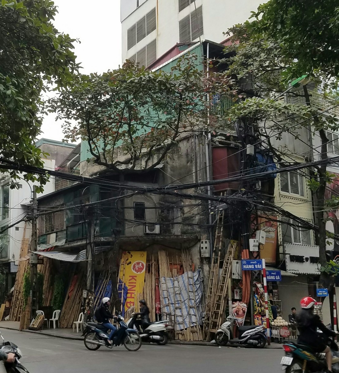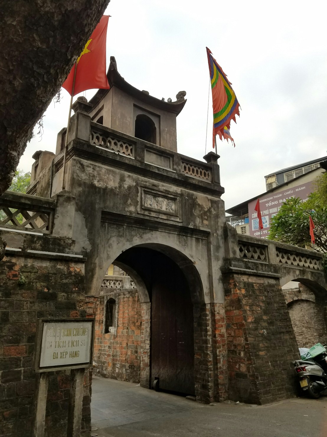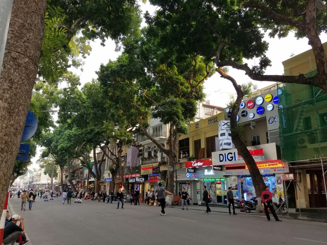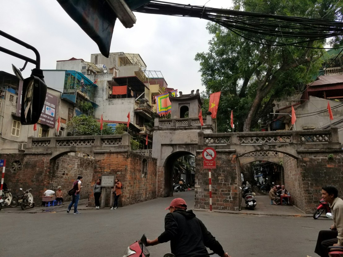 Pretty close to my hostel is an (the only) original section of city gateI was here pretty early, usually its crawling with touristsIm constantly reminded of the ruling political partyThere were blocks of folks selling fake flowersThis neighborhood is focused on building materialsI’m surprised and pleased that so many trees are left on the streets.Looks fancy, right? Well, it’s a prison built by the French to brutally punish political prisoners in their occupation of Vietnam