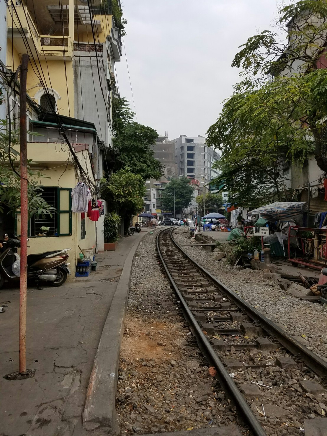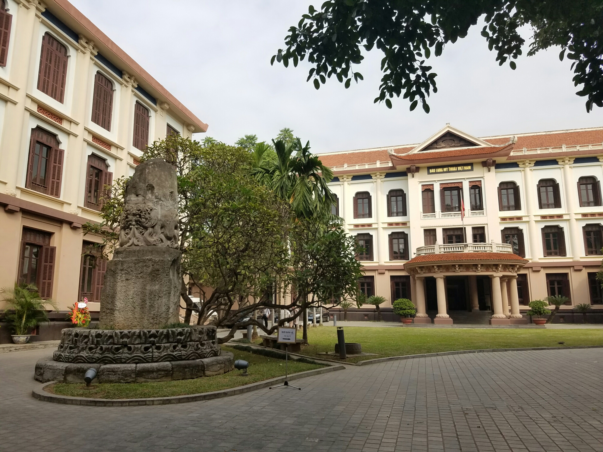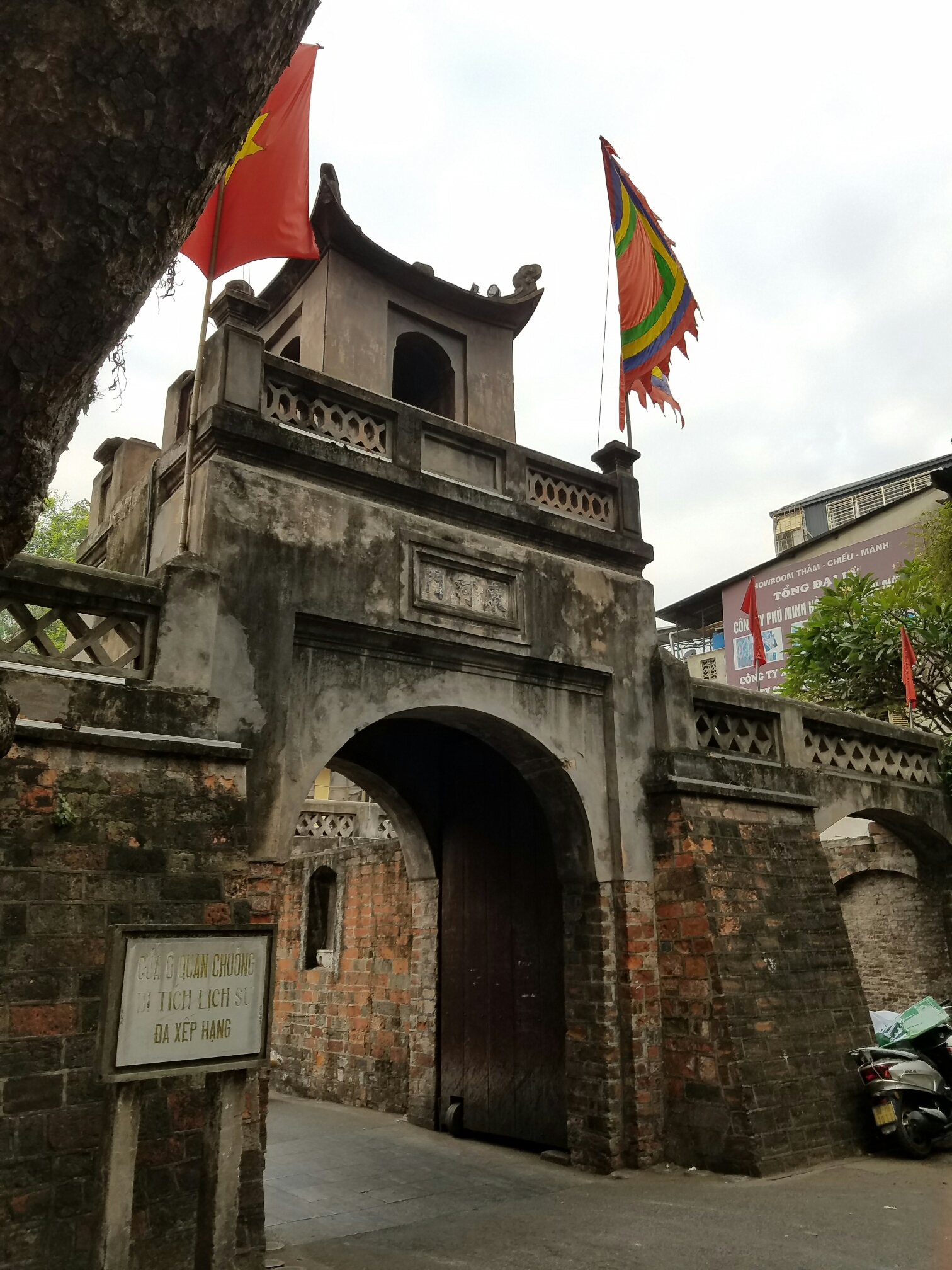 Pretty close to my hostel is an (the only) original section of city gateI was here pretty early, usually its crawling with touristsIm constantly reminded of the ruling political partyThere were blocks of folks selling fake flowersThis neighborhood is focused on building materialsI’m surprised and pleased that so many trees are left on the streets.Looks fancy, right? Well, it’s a prison built by the French to brutally punish political prisoners in their occupation of Vietnam