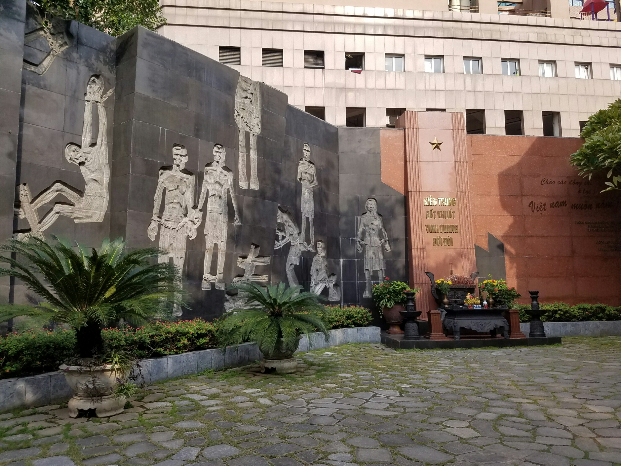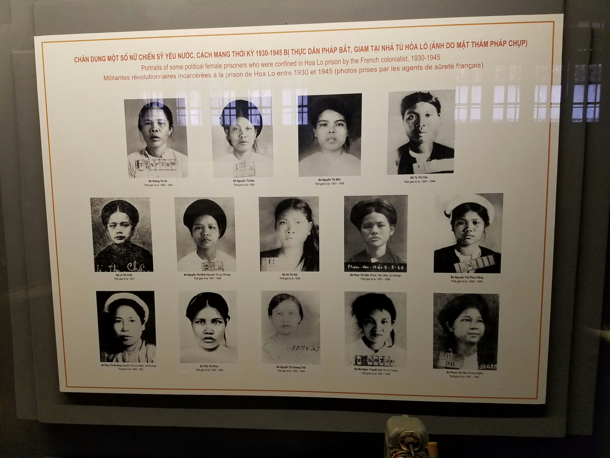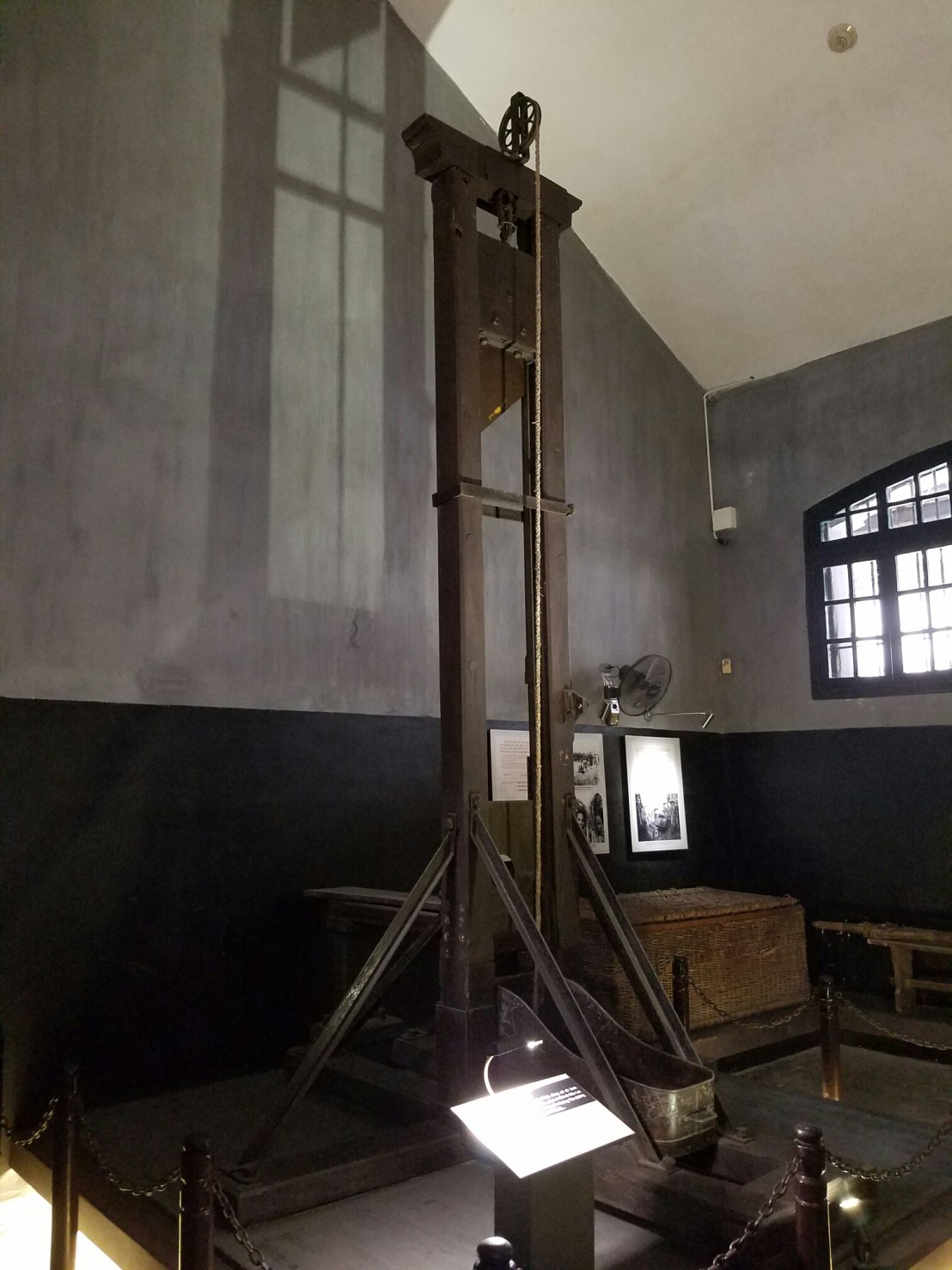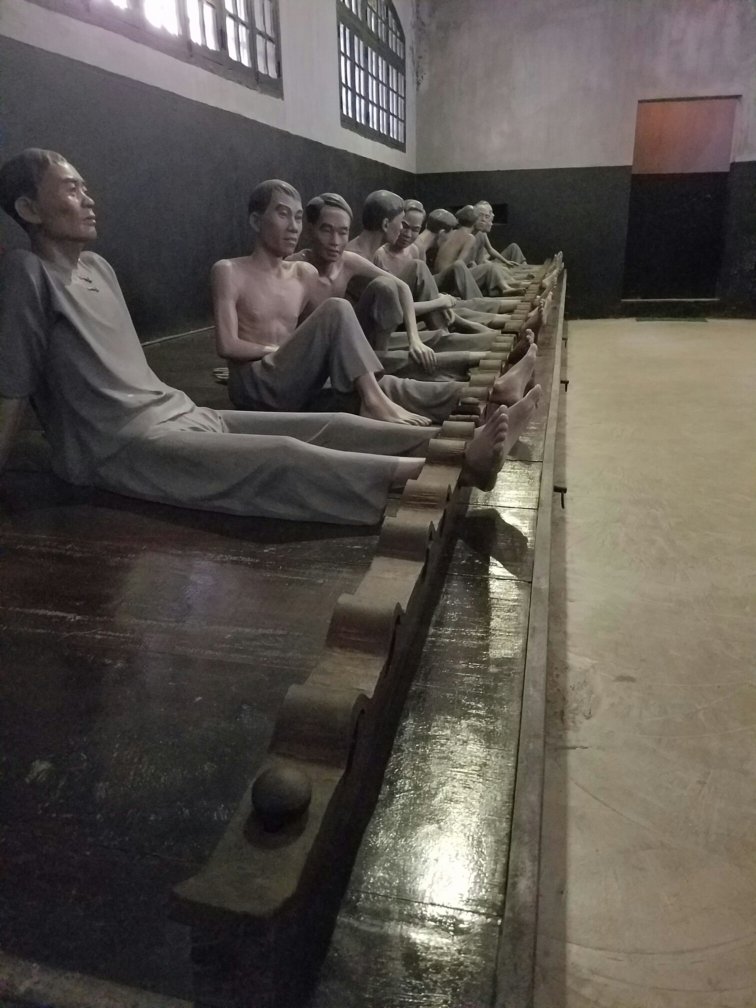 An actual section of sewer that several prisoners escaped throughIt doesn’t really show, but the concrete slab is angled backwards, so that when the prisoners passed waste it would run back up their bodies. Thanks, the French!The actual guillotine that the French used to execute several men (and women (?)A nice little courtyard with altar. A lot of the offerings were packs of cigarettesSome of the bad-ass female prisonersPatriots and communistsSome of the prisoners that survived went on to become prominent party members