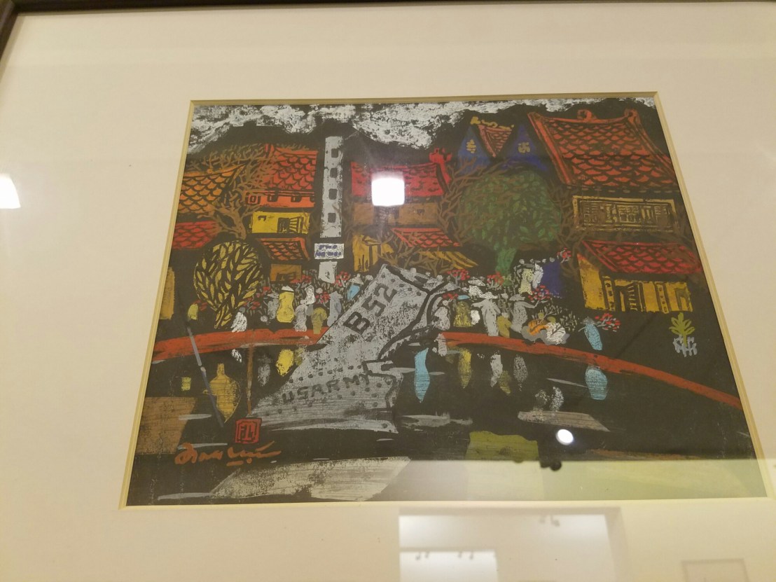 This obviously well-used and maintained train track dead ends…At this gate, we know its a government building bc it’s yellow. Mysterious!This coffee was the first “real” Vietnamese coffee I’d had. Pretty good and less than a dollar, it was served room temperature.The Fine Arts Museum, it’s on embassy rowA great display of folk arts and craftsToken exhibit of ceramics, not too shabby A traveling exhibition of Japanese ceramicsIt was a good representative section of functional and artisanal work