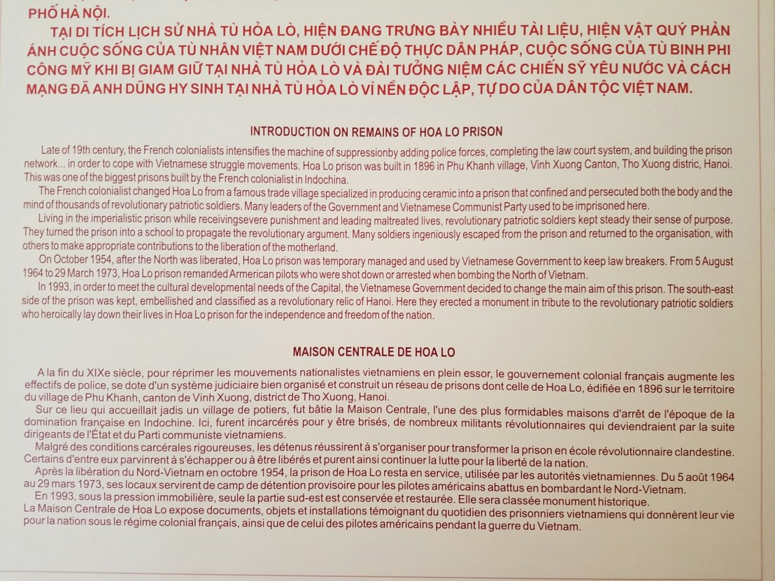 Now once the French left the country, the communist party took over the prison and used it for their own political prisoners, as well as American POWs. John McCain was held here I believe ?